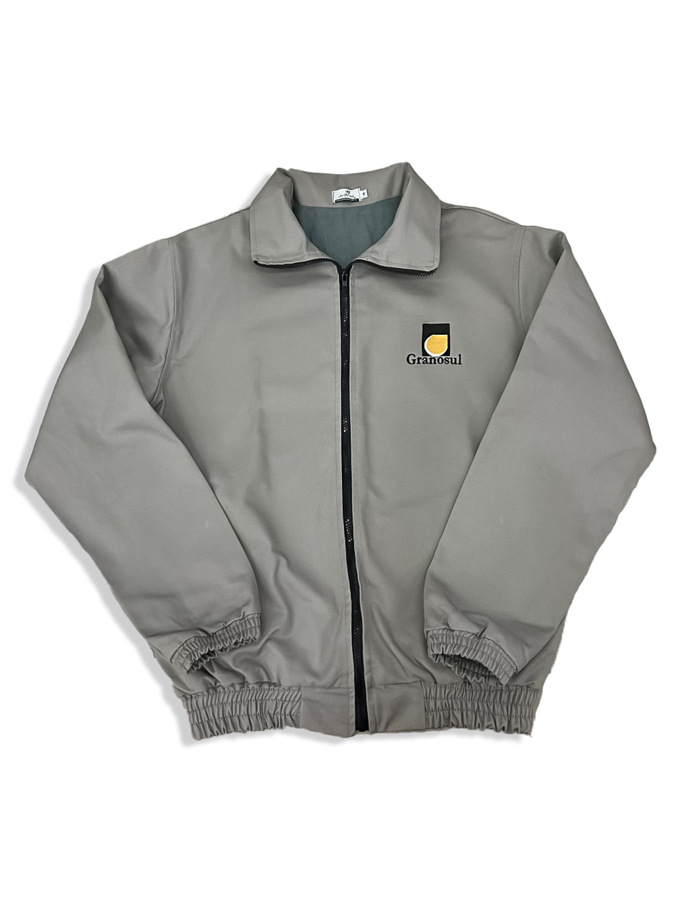 • Descrição: Jaqueta manga longa em brim com forro em tecido flanelado, elástico nos punhos e na barra, gola italiana e fechamento em velcro . Faixas refletivas na frete e costas.