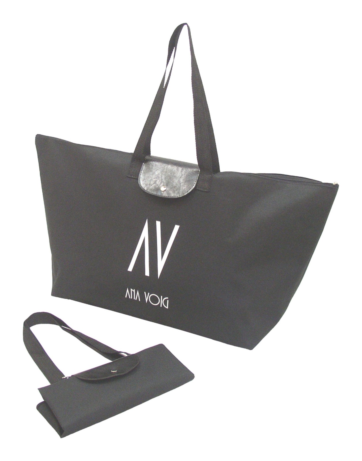 • Descrição: Bolsa dobrável em verona pvc com detalhe em couro sintético