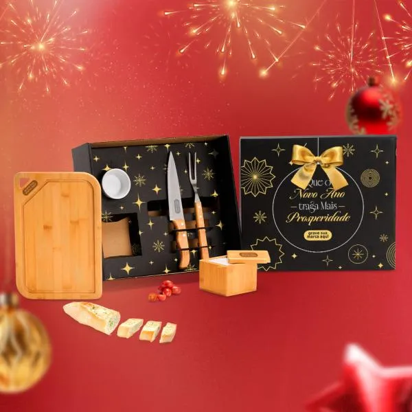 • Personalização: Uma gravação a Laser na tábua, saleiro e lâmina da faca; uma gravação em Silk/Digital na tampa da caixa.