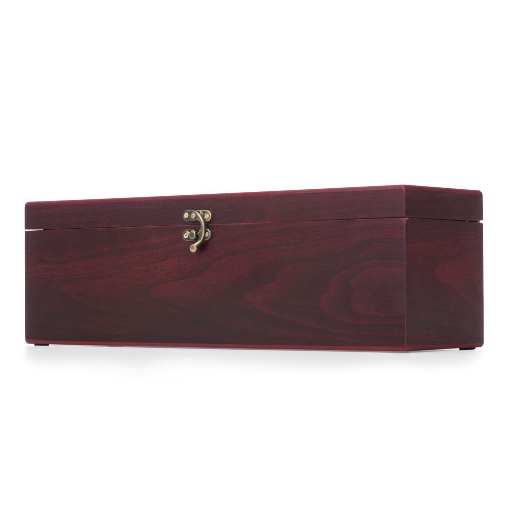 • Descrição: Kit vinho 4 peças em maleta de madeira na cor vinho. Possui: wine collar, bico condutor com tampa, tampa de bico e saca rolha. Parte interna revestida com espuma e tecido vermelho, possui dobradiças douradas e trava metálica, parte inferior com borrachas anti-deslizantes. NÃO ACOMPANHA A GARRAFA DE VINHO