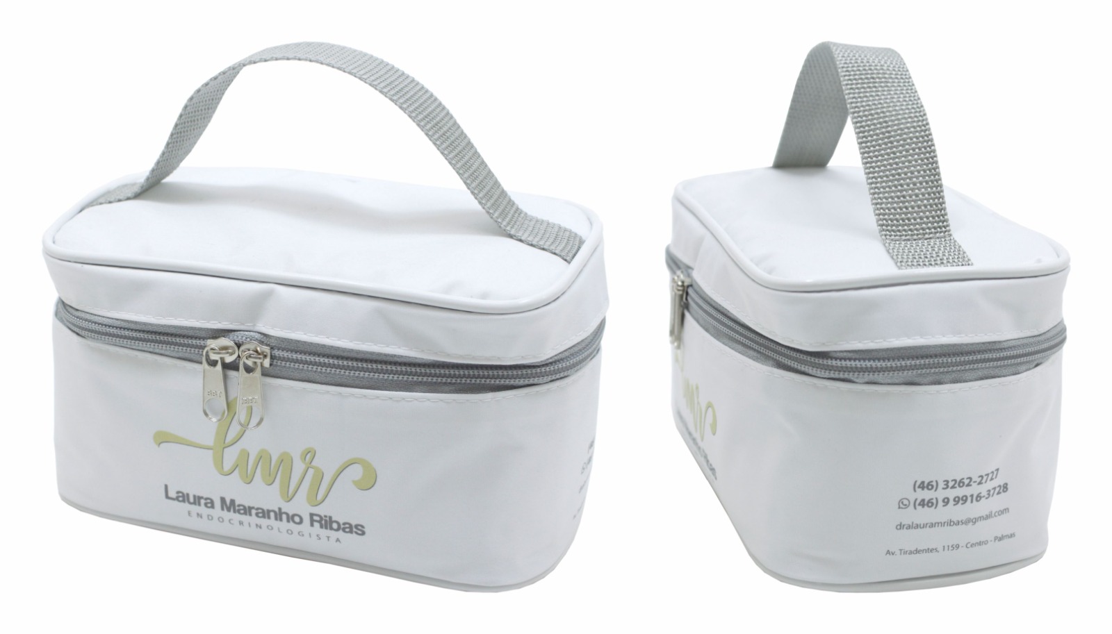• Descrição: Necessaire térmica em siena mescla, com alça de mão, sem compartimentos internos. Pode ser usada para transporte de insulina.