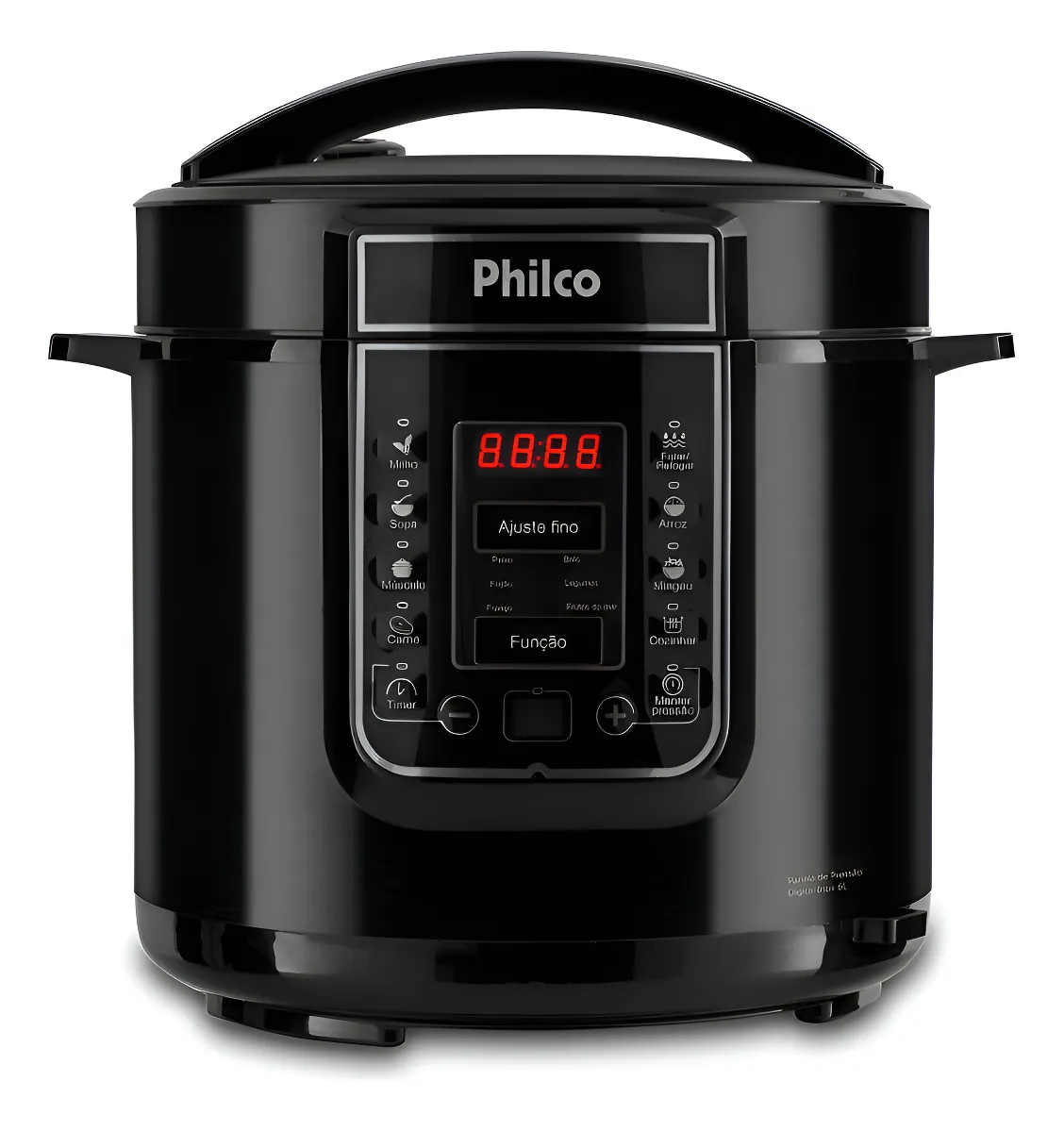 • Descrição: Panela de pressão digital com 13 opções de programação, tigela com revestimento antiaderente, coletor de agua, sistema de aquecimento automático, cordão elétrico removível, acompanha espátula e copo medidor. Capacidade em volume de 6 litros